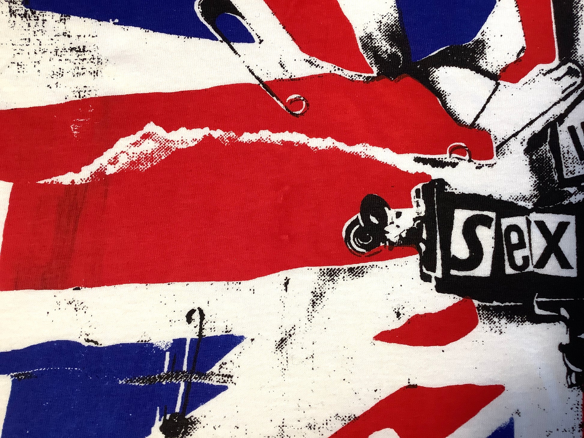 Dark ink Streaks in red part of print. Size large 57cms armpit to armpit